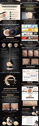 Clio Professional's Kill Cover Collection's newest addition delivers the perfection of a liquid foundation in a cushion. An innovative first-of-its kind combination of a cushion and liquid foundation. Infused with liquid foundation, achieve a seamlessly flawless and refined texture and finish with the added benefit of UV protection with SPF 50+. In addition, 33percent of its formulation is made up of hydrating ingredients recharging skin's moisture levels while the hybrid clear powder absorbs sweat and sebum to keep make up looking fresh without excess shine. Air Touch Powder and High Refractive Index Oil delivers moisture to the skin without being excessively shiny, for a luminous semi-matte, silky finish. Touching up and reapplying sunscreen has never been easier with this cake-free formula that provides uncompromising full coverage, long-lasting all day flawlessness, in a velvety smooth and lightweight formula. This special set includes a deluxe travel sized Clio Kill Cover Highest Wear Primer (20 ml), providing amazing pore coverage, tone correcting and "fixing" cover benefits.Feature