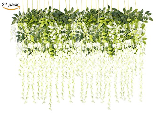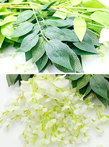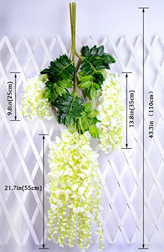 - SPECIFICATIONS & PACKAGING: Together with several leaves, total length is approximately 43.3 inch, it is easy to install. Each order including 24 branch of artificial silk wisteria, spaces enough for decorating items you want to adorn life.