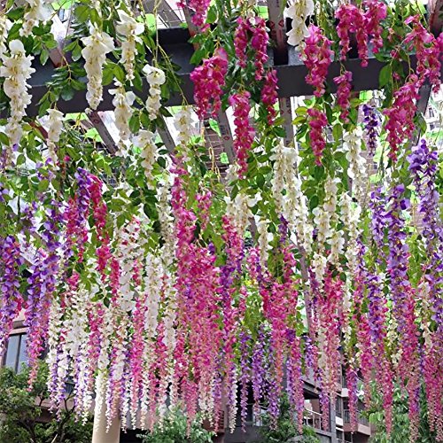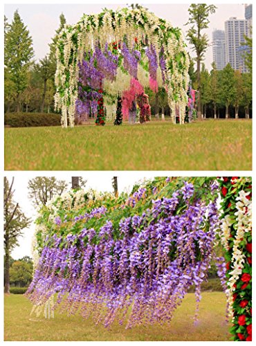 - VARIETY: Artificial Wisteria, wisteria is a symbol of love and happiness. The flowers looks beautiful, lifelike, and vivid realistic, full and soft petals, never wither and fall. Different from thin silk fabric sparse petals, our Artificial Flowers belong to quality silk fabric full petals.