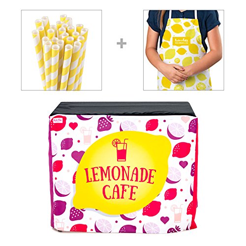EASY BUNDLE- Each bundle includes one Lil' Biz Cover, one childrens lemonade apron, 75 paper straws of assorted colors.