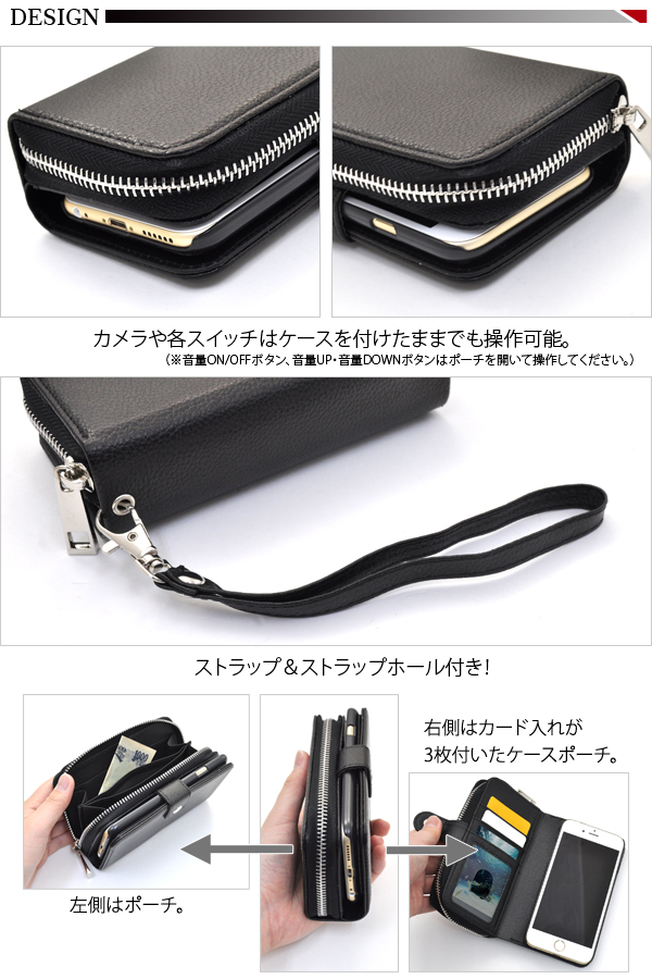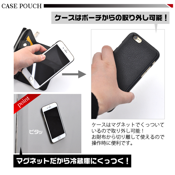 | iPhone6用ケースポーチ製品仕様 | | 対応機種 | iPhone6 | | カラー | ブラック、レッド | | 注意 | ※本製品はマグネットを使用しておりますので クレジットカードなどの磁気カードの収納は避け、カードの注意事項をよくご確認の上ご使用ください。 読み取り等ができなくなる恐れがあります。 ※本製品に収納された、カードのデータ等が喪失された場合におきましても、 当社では一切保証致しかねます。 |