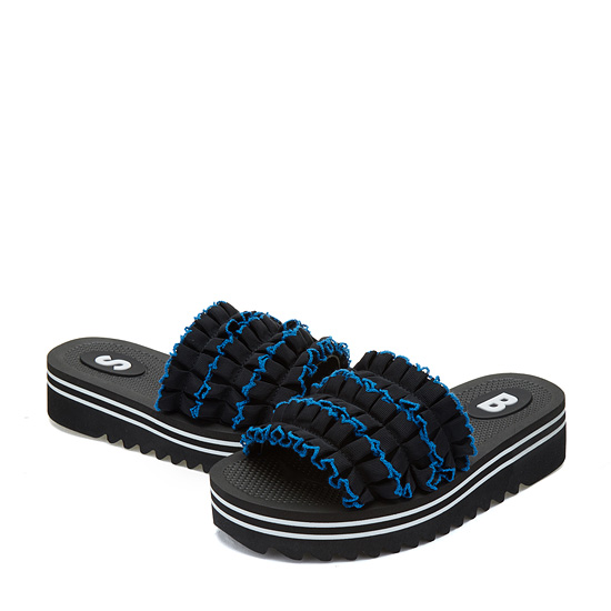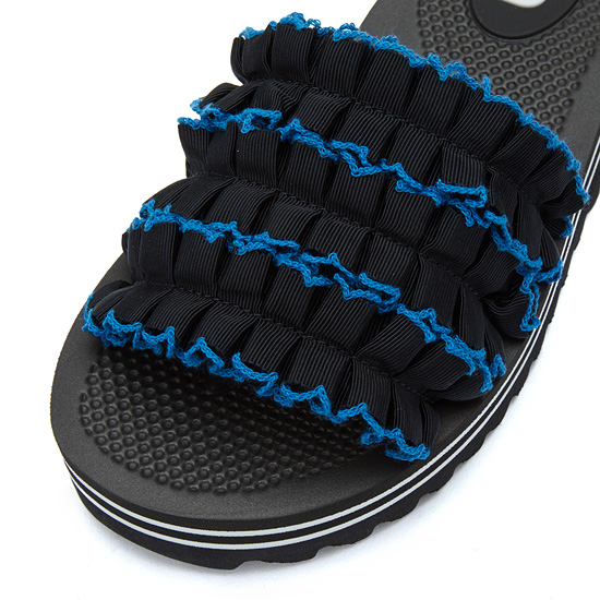 - 컬러 배색이 돋보이는 플리츠 디자인 샌들.