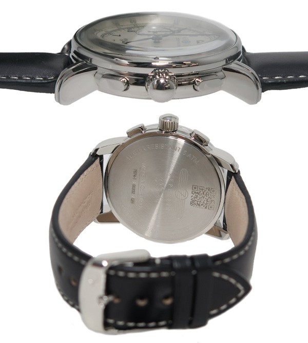 仕様クオーツ、5気圧防水、クロノグラフ、100周年記念モデル、日付カレンダー、スモールセコンド、タキメーター、MADE IN GERMANY、カラー:アイボリー(文字盤)、ブラック(ベルト)