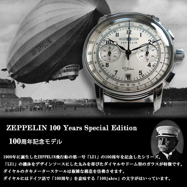 ツェッペリン ZEPPELIN 100周年記念 クオーツ メンズ クロノ 腕時計 7674-1