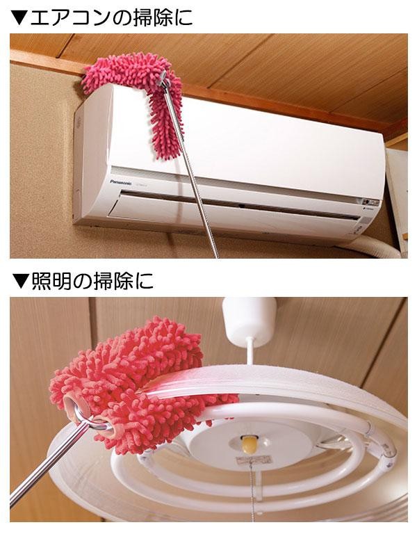 | 伸縮自在で最長約118cm!天井の凸凹もラクラクお掃除。便利な二股のヘッドは、挟んだり曲げたりできて自由自在。お掃除の効率が上がること間違いなし!モップ部分は吸着性・吸水性に優れたマイクロファイバーを採用。これ1本で家中をピカピカに!※サイズは多少変動します。 |