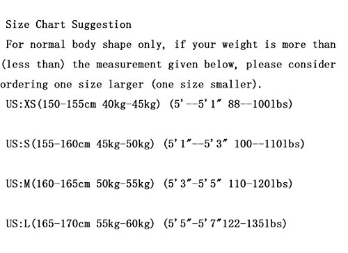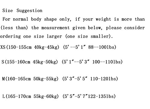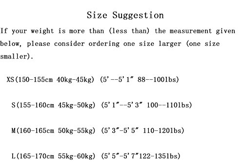 *For normal body shape only, if your weight is more than (less than) the measurement given below, please consider ordering one size larger (one size smaller).