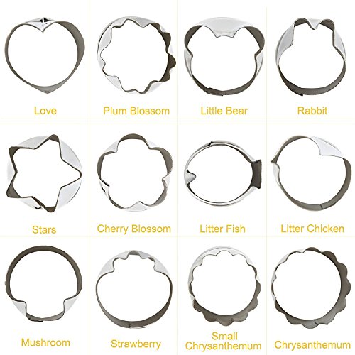 Mini Cookie Cutters, Biscuit Cutter, 12 PCS Stainless Steel Vegetable Cutters, Snowflake Heart Shape Cutters for Kids