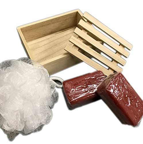 -. Feature : AUTHENTIC: Each bar is made in France by dedicated soapmakers in Provence following traditions handed down from generation to generation / LUXURIOUS: Smoother, richer lather creates a luxurious feel on the skin. / QUAD MILLED: Quad Milled for a bar that lasts, all soaps are enriched with shea butter, pure, all natural ingredients and aromatic fragrance / PACKAGED: Two luxurious soaps are packaged with a pretty wooden soap dish with soap saver and soft scrubby pouf for a great gift to a friend or to oneself
