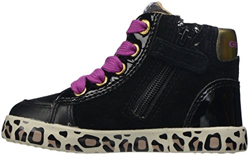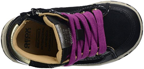 GEOX B KIWI GIRL 54 (Inf/Tod) - BLACK/GOLD Thanks to its high level of specialization, Geox knows exactly what your child's feet need to develop properly and with the right comfort for the various phases of growth. The rubber soles on this model are based upon an exclusive Geox patent: a breathable and waterproof membrane that allows for natural thermoregulation and creates an ideal microclimate inside of the shoe. Geox Guarantees the impermeability of the perforated sole but not of the entire shoe. Do not clean perforations with sharp objects. Like all other shoes, Geox should be stored in a dry, well ventilated area. Do not machine-wash. Made in Italy