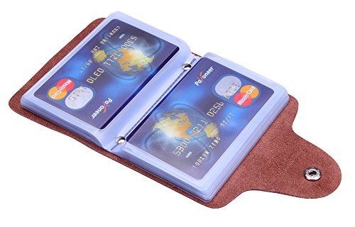 -. Feature : Material:genuine leather ,high quality clear plastic and metal buttons / Usage: Business card holder/ credit card holder/VIP card holder,allow you store 24pcs cards / Manage your cards well,help you to find any card easier and faster / Compact design,easy to carry and safe to protect,Water repellent / Suitable for all people,especially fit for girls or women