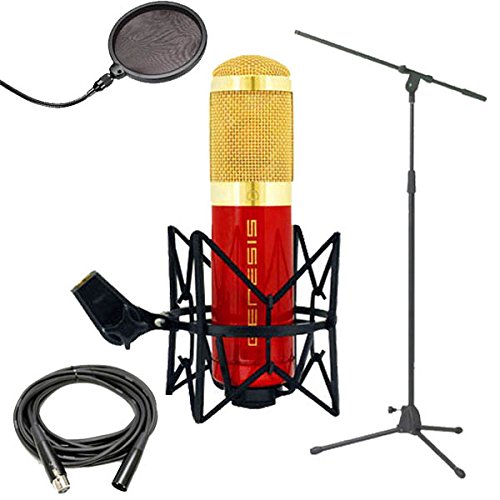 -. Feature : Includes: Genesis Condenser Tube Mic, Shockmount, Mic Boom Stand, Pop Filter & XLR Cable / Unmistakable glossy red body and gold grill / Hand-selected Mullard 12AT7 tube / 10 dB pad / 150Hz, 6 dB/octave roll-off switch