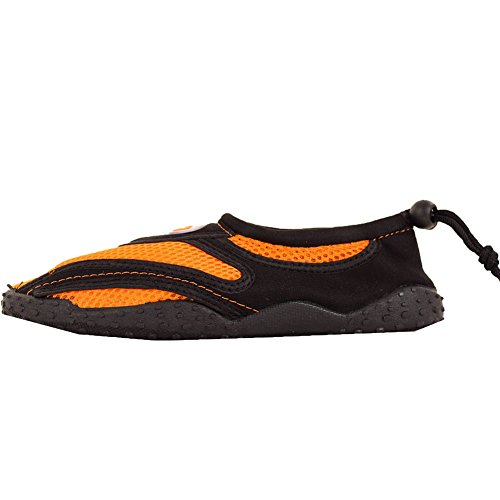 Product Description These slip on water shoes are a great choice for any adventure involving water. Made out of a breathable mesh material, they make a perfect aqua sock for days the the pool, beach or water park. 0