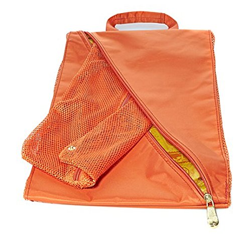 Never fret about storing laundry and other important items when you travel. This smart kit features bags to keep you organized while on the go. What a great way to have a place for everything and everything in its place. Crossbody Measurements: Approx. 8"L x7-1/4"W x 1/2"H Weight: Approx. 0.44 lbs. Handles: Adjustable, removable shoulder strap Clear Pouch Measurements: Approx. 9"L x 8-1/2"W Laundry Cubes Measurements: Approx. 14"L x 10"W x 4.7"H Expandable: No Weight: Approx. 0.81 lbs. Closure: Diagonal zippers Handles: Carry strap Removable Mesh Bag Measurements: Approx. 9"L x 13"W Closure: Zipper Laundry Stow Away Bag Measurements: Approx. 15-1/2"L x 13"W x 1-1/2"H (large); 16-3/4"L x 11"W x 1-1/2"H (medium) Closure: Zipper The Basics Color Choices: Burgundy, Black, Green, Brown, Yellow or Royal Blue Hardware: Goldtone Exterior: Nylon microfiber Interior: 210D printed polyester Country of Origin: China FEATURES Water-resistant exterior material (crossbody bag only) Self-repairing zippers