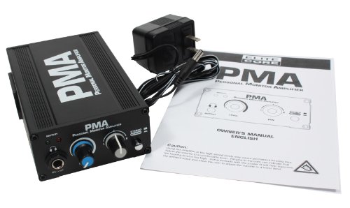 Studio : Elite Core Audio Publisher : Elite Core Audio Binding : Electronics Product Description The Elite Core PMA is a high-powered stereo or mix-mono personal monitor headphone amp designed to provide loud and clear monitoring through headphones or earphones. Signals from AUX outs are connected to the inputs of the PMA via combo XLR/TRS jacks. Headphones or earphones are powered by a strong 50mW per channel amplifier. The PMA can be conveniently mounted onto standard mic stand threads. Powered by the included 9V adapter, or by a 9V battery 0