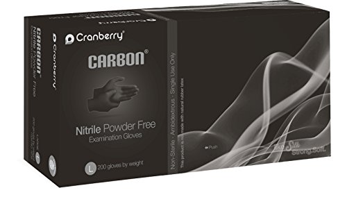 Cranberry CR3238 Carbon Nitrile Powder Free Exam Glove, 3.2 mil, Large, Black (Pack of 200)