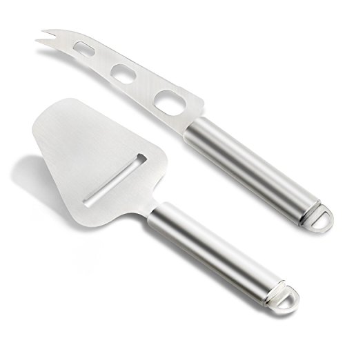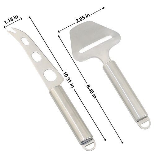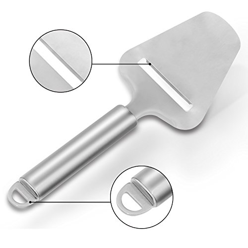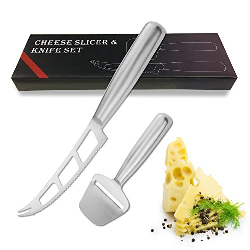 Gikpal Cheese Slicer Knife Set, Stainless Steel Cheese Cutter Slicer with Multi-Use Cheese Fruit Veggie Knife Cheese is one of those wonderful go-to foods to serve on just about any occasion. It's delicious, versatile, can be casual, formal, and anywhere in between, and it goes with everything. There are cheeses appropriate for breakfast, lunch, dinner, appetizers, and yes, even dessert. Having the right cheese knife will enable you to easily make attractive, uniform slices. Features: Easily slices hard or soft cheeses Professional high grade 430 stainless steel Solid filled handle, non slip and easy to hold. Round handle shape fits the hand perfectly for effortless work Please be careful when cleaning the knife. Dishwasher cleaning recommended. Package include: 1 stainless steel cheese slicer 1 stainless steel cheese knife About GikPal GikPal offers world class customer service .60 days warranty. 100 % satisfaction or just get your money back. Totally no risk free on your side. If you are not completely satisfied with your purchase, Contact us for refund or replacement. Your satisfaction is our first goal and we are happy only when you are happy. 0