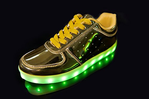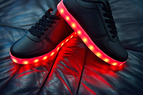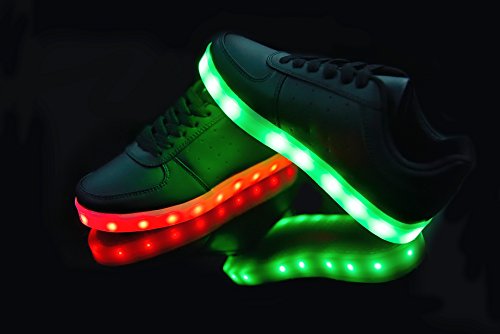 -. Feature : It Is Dellukee Own The Trademark(USPTO Serial Number: 87111202) / NOTICE:It is our own size chart. So you need choose size according to foot length in the product description. Or contact us for size sestion. / SWITCH INSTRUCTION: Hidden switch button. Find the "click". Press it to switch on,It starts with steady red light. With each press, it changes to another light mode. Switch hidden inside shoes,it nearby the USB port, you can press it to fix the shoe on one color, or flashing. / LIGHT MODES: With 7 colors and 11 modes. From mode 1-7 are solid one color. From mode 8-11 are color or mixed color with light flash. The 12th switch will close the light. (You also can press the switch for 2-3 secs to turn the light off directly. The light color included: red, green, blue, yellow, sky blue, purple, white.)directly. The light color included: red, green, blue, yellow, sky blue, purple, white.) / CHARGE INSTRUCTION: Easy charge like your cell phone with the attached USB charging cable. Switch on the shoes when received and light up until all power gone. Then charge both shoes for 3 hours.