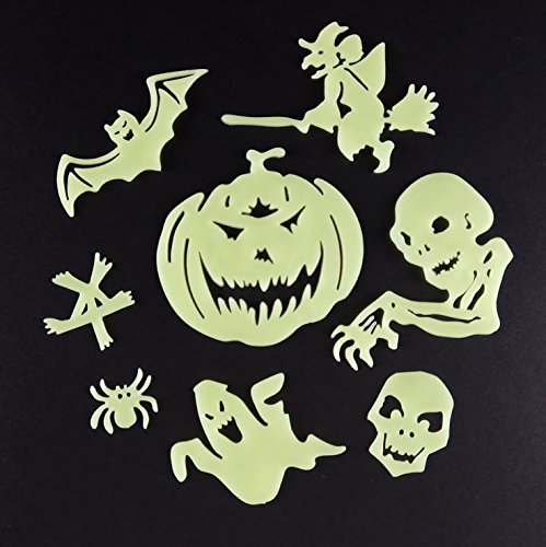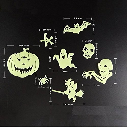 - Will arrive with one sheet,8pcs Glow-In-The-Dark Halloween Stickers,including Pumpkin,bat,witch,skull,spider etc for your choice.