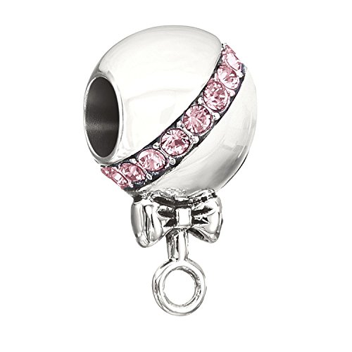 -. Title : Authentic Chamilia Sterling Silver Charm "Rattle On" w/Pink Swarovski 2025-1070