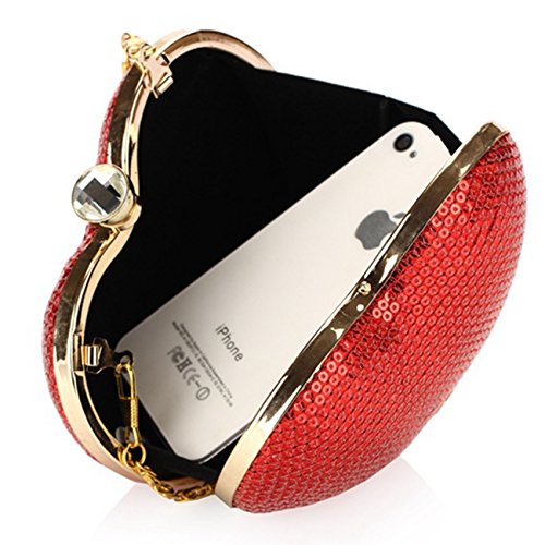 -. Title : Evening Clutch Bag, Fit Wit Heart Shape Cocktail Wedding Party Handbag Clutch Purse - Red