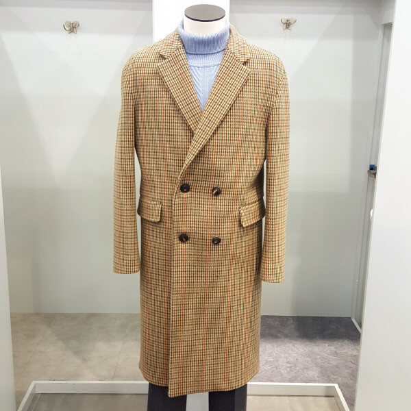 EZIO HOMME세미오버핏 체크더블 롱코트FW의클래식한 색감과 트렌디한 색감이어우러진 체크원단으로 롱한기장감과 헤비하게덮히는디자인이포이트 95사이즈(뒷목점기준:105센치)