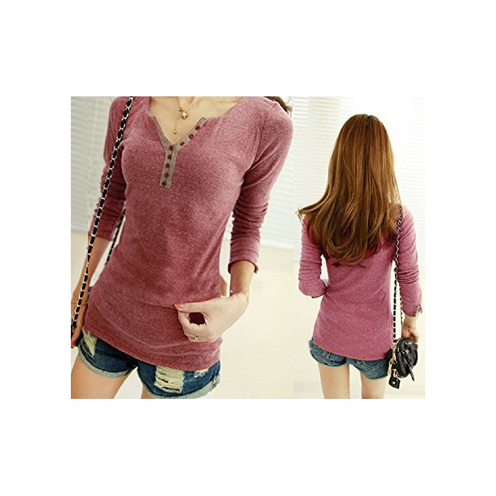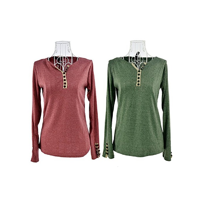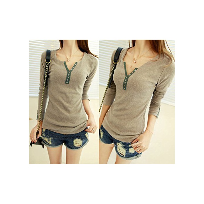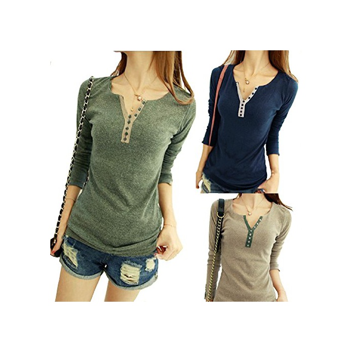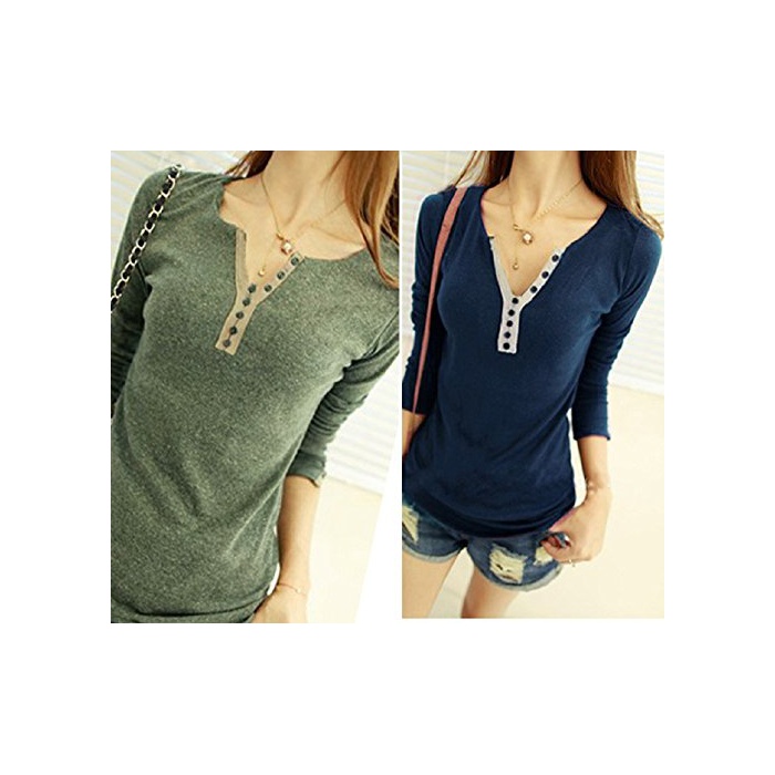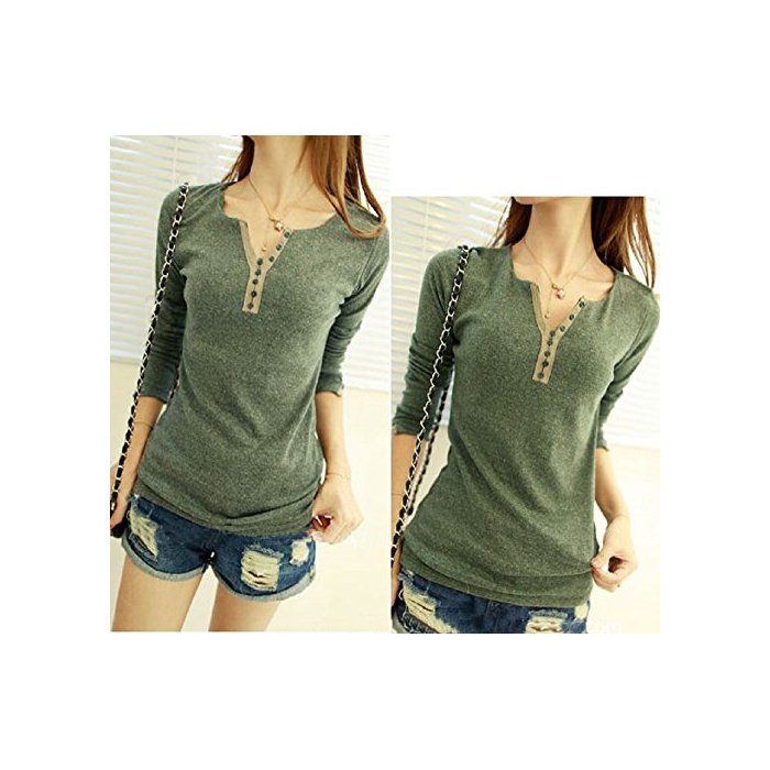 원본상품명: ボタンデザイン カットソ レディス トップス 長袖 (グリン)