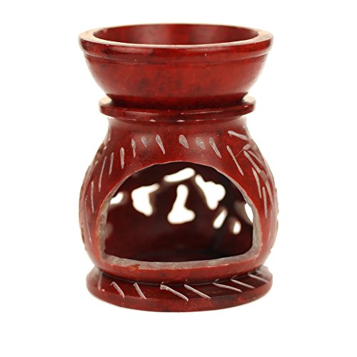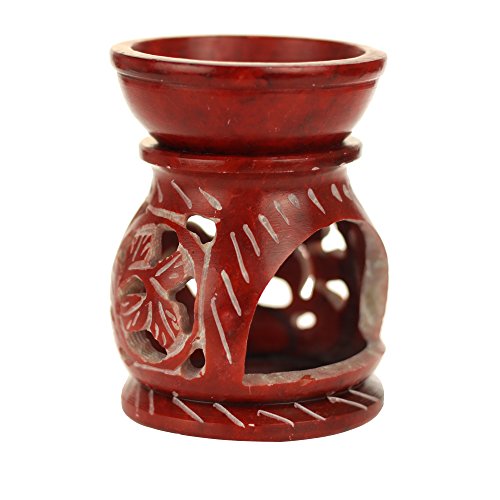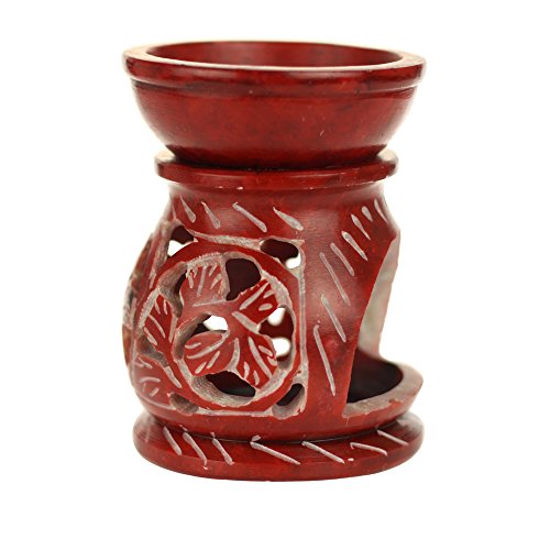 Oil Diffuser - Red Soapstone Oil Burner Round leaves 3.25"