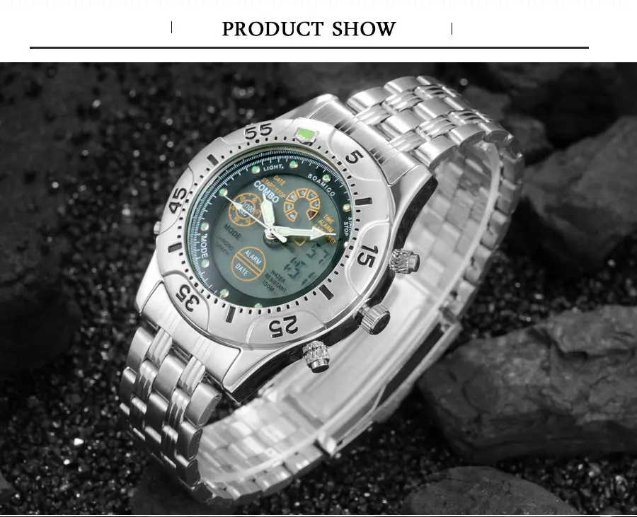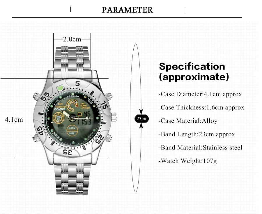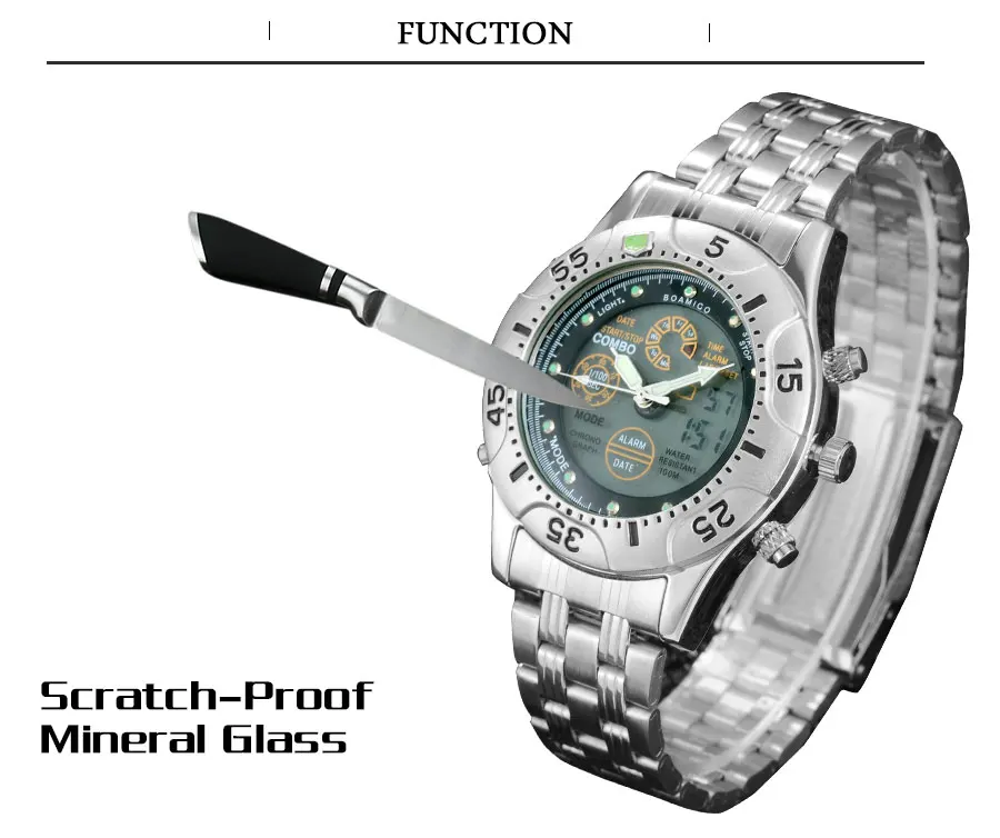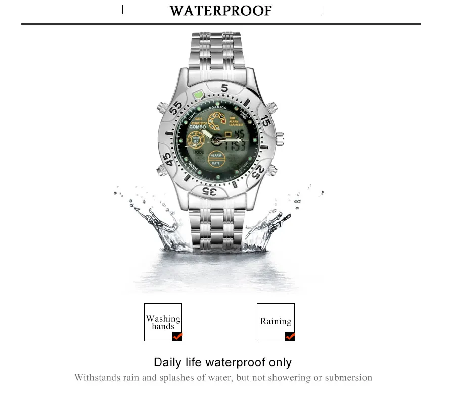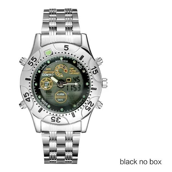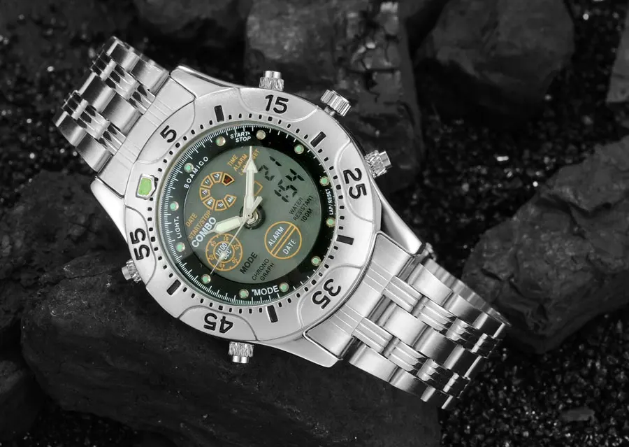 Feature:Stop Watch,Shock Resistant,LED display,Auto Date,Chronograph,Complete Calendar,Multiple Time Zone,Perpetual Calendar,Water Resistant