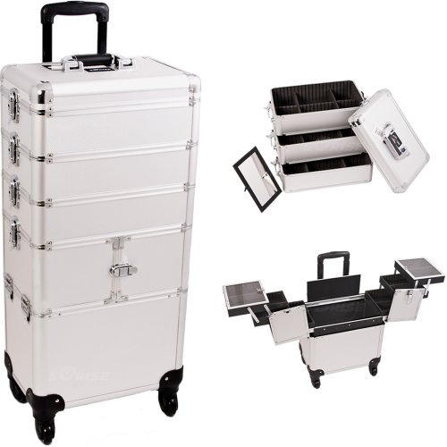 Sunrise I3364DTSL Silver Dot 3 Tiers Accordion Trays Professional Rolling Aluminum Cosmetic Makeup Craft Storage Organizer Case and Stackable Trays with Dividers