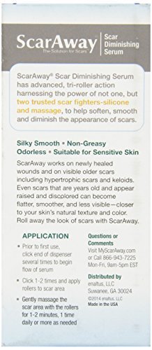 Binding : Health and Beauty Product Description Reduces the appearance of scars resulting from Surgery, Injury, Burns, Acne, Stretch Marks, Cuts, Insect Bites and more. Silkysmooth; nongreasy, odorless. Safe for sensitive skin. Innovative triroller applicator harnesses the power of two clinically proven scar fighters. Silicone and Massage to help soften smooth and diminish the appearance of scars. 0