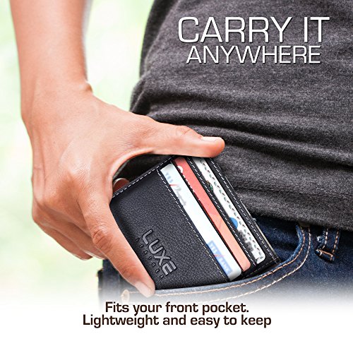 -. Title : Luxe Leather Front Pocket Slim Minimalist Wallet for Men & Women – New & Secured RFID Blocking Design
