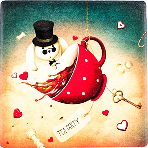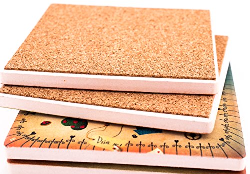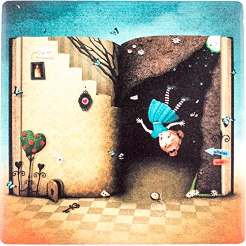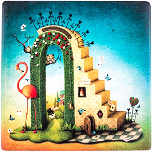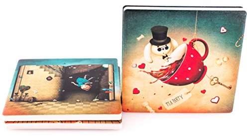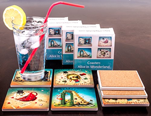 -. Feature : WONDERFUL DESIGN - You are going to love the design of our "Alice in Wonderland" absorbent Ceramic Coasters for drinks, beer, wine. Beautiful coasters set, makes a great gift! Amazing artwork that makes your coasters unique and will not fade or scratch off. No stain or grease can stay on them. / CERAMIC MATERIAL - Made from a special absorbent ceramic stone (which works BETTER than Sandstone) that can absorb spills or beads of water that sweat from a chilled glass, they can absorb the water outside the icy cup. Extend the life of your furniture by using Yaplex Coasters, which has been tested to provide maximum protection from heat, cold, and moisture. Any liquid will be absorbed into the coasters leaving the surface dry. / CORK BOTTOM: Cork on the back of the coaster can not only protect the desktop from scratches but also provide additional gripping to the land, tightly stick to the desktop, easily handles bumps and drops. They are slightly weighted and don't stick to the bottom of the cup when lifted. / DURABLE - Our Coaster have been designed for superior durability, and will not break if dropped, or scratch surfaces the way other coasters do. Our coasters have been successfully tested for red wine stain resistance and easy to clean. / LARGER SIZE- Our 4'' Coasters for drinks will easily fit any of your large mugs, rocks glasses, or water bottles better than the competitors smaller coasters. Precision placement of your beverage is not necessary with our Coasters! Will NEVER stick to the bottom of your bottles or glasses. 4 x 4 inch square provides a large and solid surface.