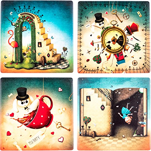 -. Title : Coasters for drinks - Drink Coasters Set of 4 - Alice in Wonderland Stone coasters for drinks. Absorbent, Ceramic coasters for drinks