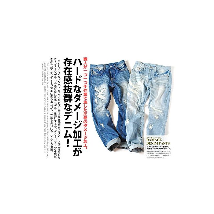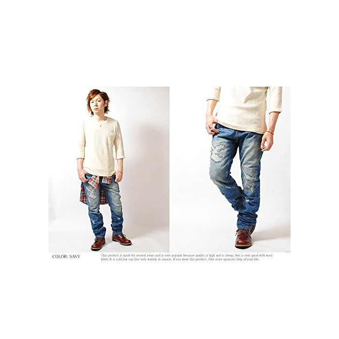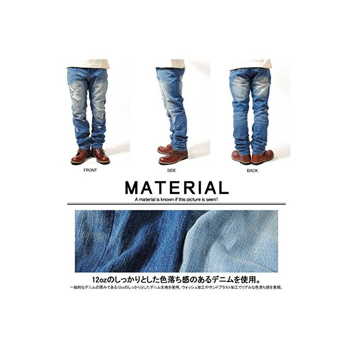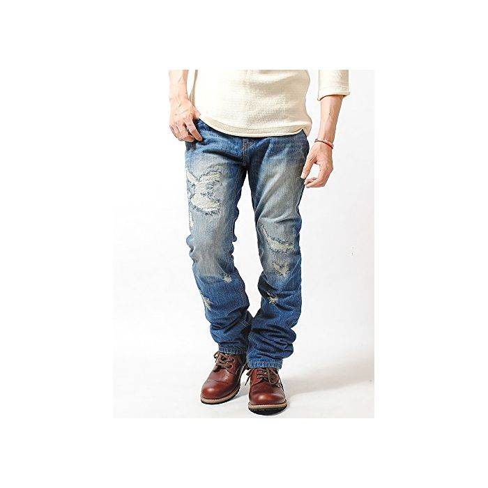 원본상품명: FLG(フルグロウ) 12oz ダメジ デニムパンツ ジンズ クラッシュデニム (L, 85 ネイビ)