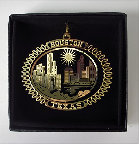 Houston Texas Brass Ornament Souvenir Black Leatherette Gift Box