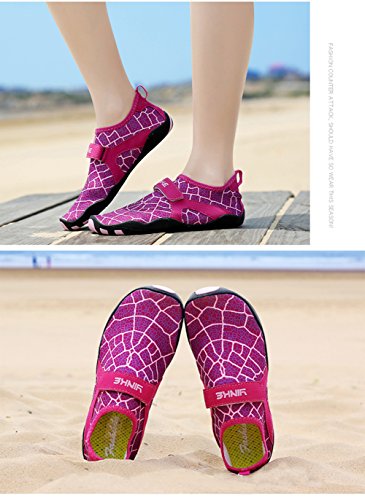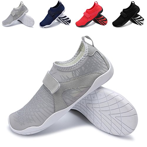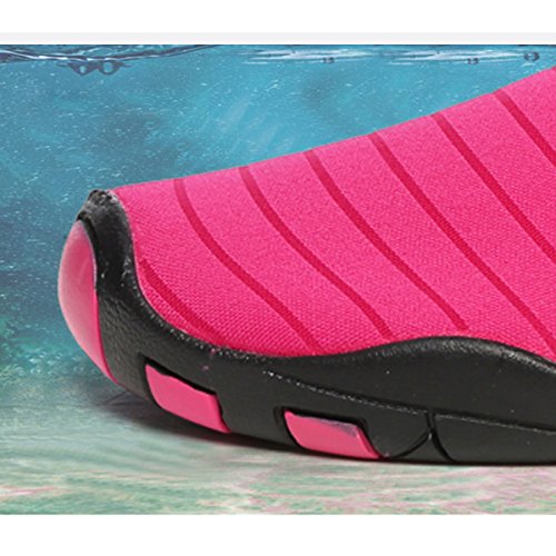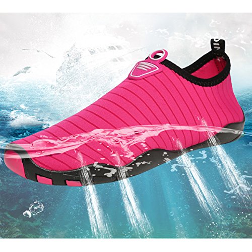 -. Feature : Quick Drying: Open mesh upper and holed sole provides full range of drainage systems, drain off water and sweat in a very short time, keep your feet comfortable. / The super lightweight, soft and elastic rubber sole, which can protect the feet as well as enhance the stability and comfort. / Professional anti slip sole with strong track adhesion, even in the water can also provide a reliable grasping performance. / Good toe protection, can easily cope with the different conditions. / Full covering design, evenly wrap your feet, to fit your feet and to protect your feet much better than other water shoes.