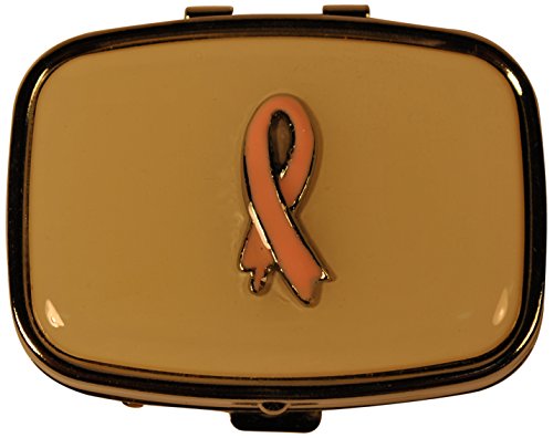 Budd Leather Rectangular Pill Case with ABCF Raised Ribbon, Pearl White
