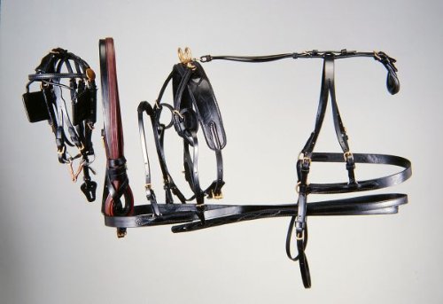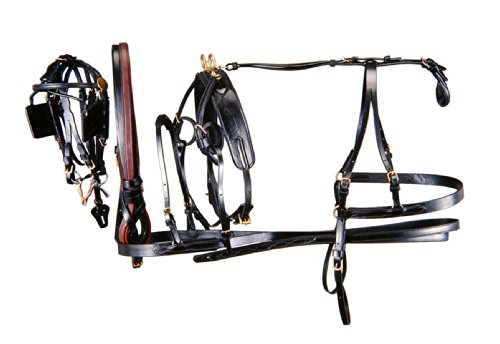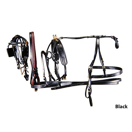 Product DescriptionTough 1 black miniature driving harness is made of fine quality black harness leather with brass trimmings. Complete with breeching and lines.0