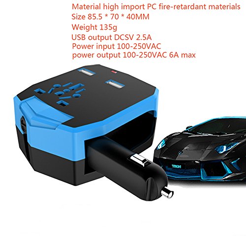 GEREE Worldwide Dual USB Travel Adapter w/ Car Charger Safety Fused Charger for Mobile/Tablet/Camera/Laptop in 150+ Countries , International Plug [US UK EU AU] (Blue car charger)