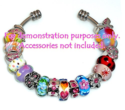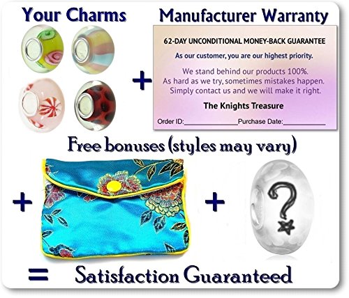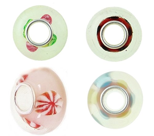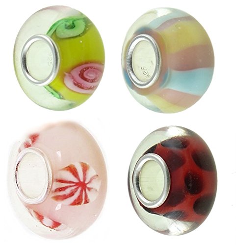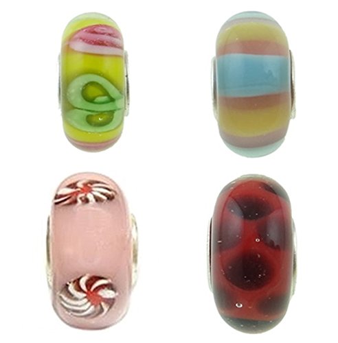 - Easy to use, high quality, and compatible with all brands of standard charm bracelet and necklace European beads and charms, including Chamilia, Troll, LoveLinks, Soufeel, Pugster, Brighton, and Pandora. - - SET OF FOUR beautiful sterling silver glass charms representing spring flowers, pastel stripes, ladybug spots, and peppermint candy. - SWEET idea for Easter or a birthday for any deserving little girl. - CHARM SIZE 7x14mm, unthreaded hole size 4.5mm. - FREE BONUS European-style charm with every product. - BEAUTIFUL GIFT BAG for instant gift-giving. - NO RISK with our 62-day unconditional money-back guarantee! - INDIVIDUALLY HAND INSPECTED and carefully packaged to ensure quality and safe delivery. - LIMITED-TIME OFFER: Free Bead Rewards Club, details included with purchase.