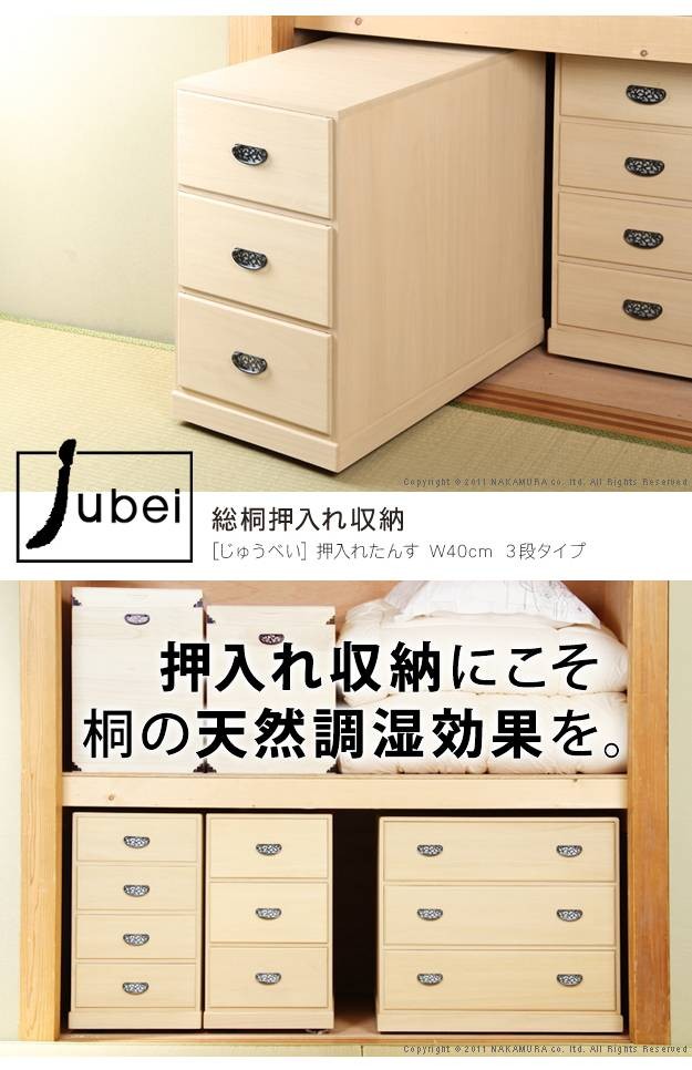 総桐押入れ たんす Jubei〔じゅうべい〕 スリム3段 桐タンス 押入れ 収納 国産