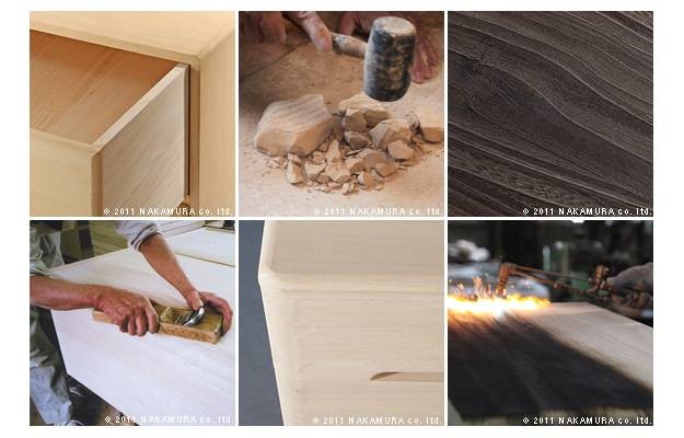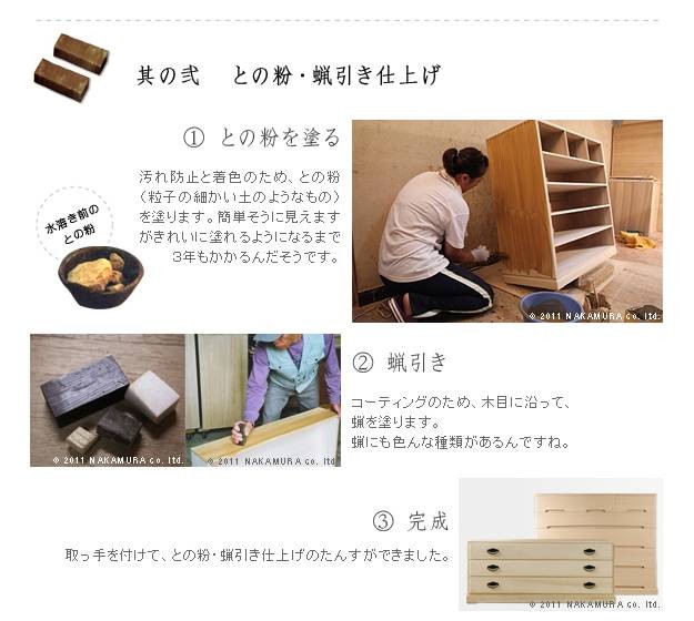 材質:天然木(桐)、取っ手:亜鉛合金、との粉ロウ引き仕上げ