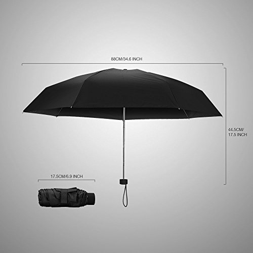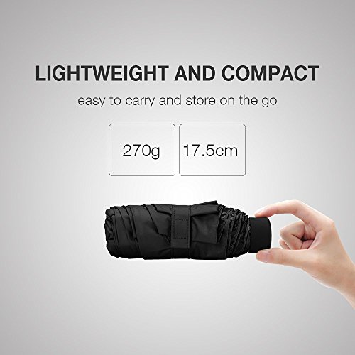 -. Brand : Plemo -. Color : Black -. Department : unisex-adult (lage only) -. EAN : 4897051614906 -. Feature : With only 270g/0.6lbs. in weight, this ultra light-weight umbrella can be carried with ease wherever you go / Foldable to 17.5cm/6.9in (about one palm's length) with 5-fold rib design; compact body can easily be stored in your bag or pocket / Fully blocks heat and harsh UV rays with intensive black vinyl coating; you'll feel cooler in the hot sun / Effective rain-repelling fabric ensures raindrops slide off the umbrella rapidly without leaking through even in harsh pouring rain / Durable usage for rainy and sunny days; enjoy your umbrella 365 days a year -. IsAdultProduct : 0 -. IsAutographed : 0 -. IsMemorabilia : 0 -. MPN : UA_31 -. PackageQuantity : 1 -. PartNumber : UA_31 -. ProductGroup : Lawn & Patio -. ProductTypeName : OUTDOOR_LIVING -. Size : Small -. Title : Plemo Ultra Compact Parasol Lightweight Pocket Anti-UV Umbrella Mini Folding Travel Umbrella (black)