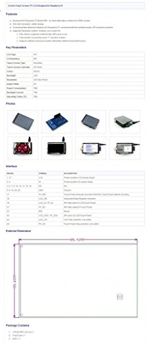 - Feature : Designed for Raspberry Pi Model B/B+, an ideal alternative solution for HDMI monitor / 320¡Á480 resolution, better display / Convenient Men-Machine interface for Raspberry Pi, combined with the portable power, DIY anywhere anytime / Supports Raspbian system / Support software keyboard (system interaction without keyboard/mouse)