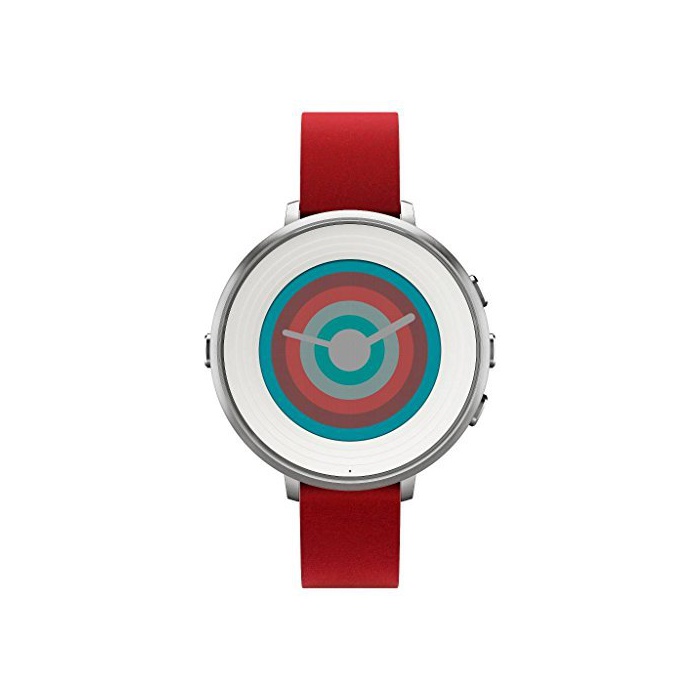 Pebble # 블루 14 mm Time Round Smartwatch - Silver/White Face flame with Red Leather 극박 또한 초경량의 환형스마트