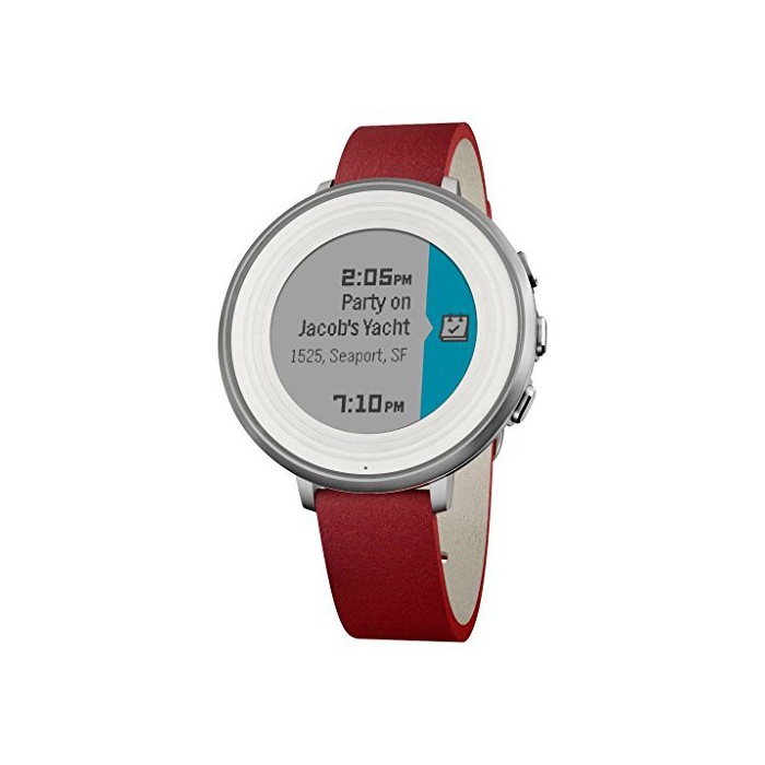 원본상품명: Pebble ぺブル 14 mm Time Round Smartwatch - Silver/White Face flame with Red Leather 極薄かつ超量の丸型スマトウォッチ