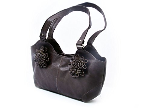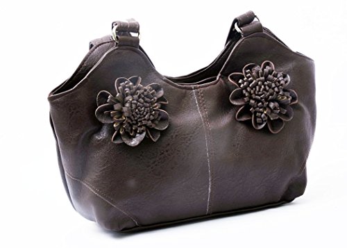 Valentine Day Special Present, Women Purses Dark Brown,Color 3 Interrior, Compartment,Shoulder Handbag 2 Flower Design,Genuine Purses, Purses Storage Organizer, Purses For Girls Size 12 X 6 Inch