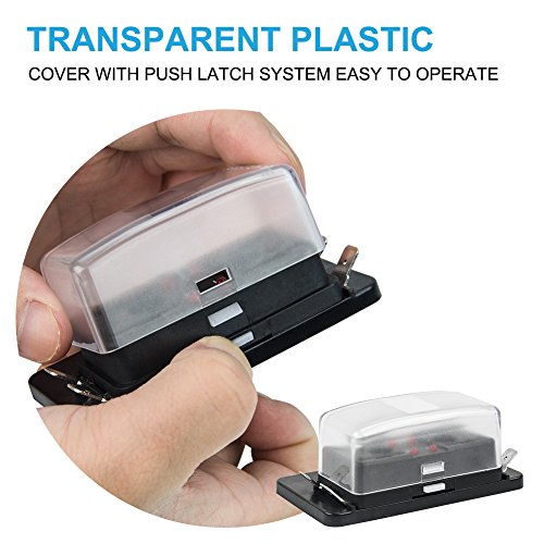 Liteway Car Truck 4 Way 12~32V Blade Fuse Holder Box 4-Circuit Fuse Block with Cover for Automotive Boat Marine(LED Indicator), 2 Years Warranty