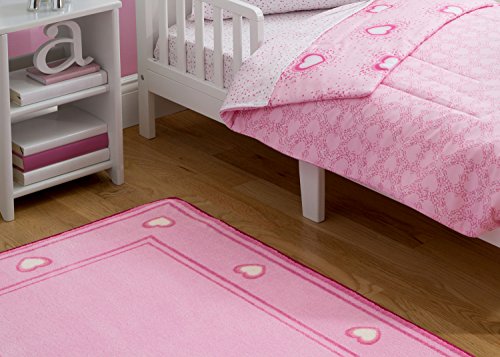 Studio : Delta Publisher : Delta Product Description This Kids Area Rug in Hearts from Delta Children screams full-on fun! Its vibrant hues and playful heart boarder sets the stage for a creative and inspiring space. Built with kid-friendly materials for long-lasting use that stands up to everyday wear and tear, this durable accent rug is a soft and stylish foundation for the nursery, bedroom or playroom. To complete your child's room, pair this rug with the Girls Hearts Sprinkles Toddler Bedding Set from Delta Children (sold separately). 0