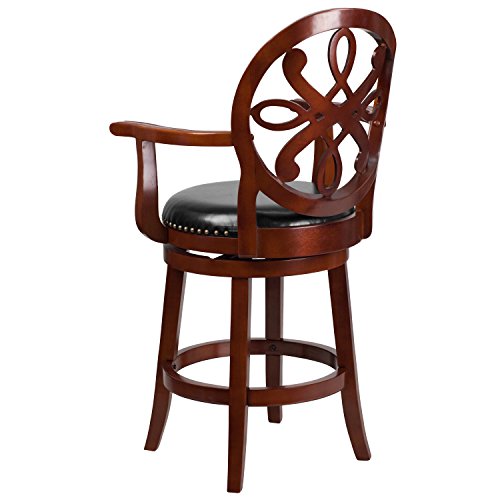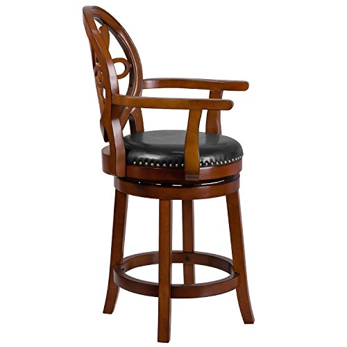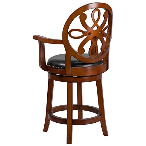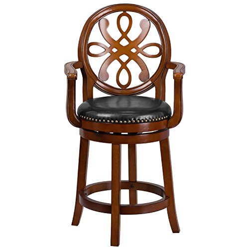 -. Title : Flash Furniture 26'' High Wood Counter Height Stool with Arms and Black Leather Swivel Seat